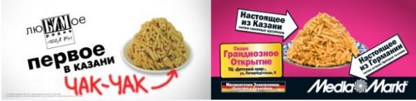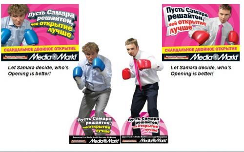 Ранее такой же принцип «состязания за звание лучшего магазина» использовала в своей рекламе сеть Media Markt. В полночь 9 июля в ТРК «Мегакомплекс «Московский» в Самаре начал работу второй магазин Media Markt. Этому запуску предшествовала активная рекламная кампания, в которой директор нового магазина «бросал вызов» директору Media Markt в ТРК «Космопорт», работающему на рынке Самары с декабря 2007 г.