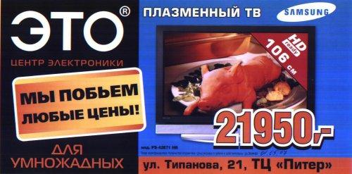 В начале 2009 г. рекламные постеры сети ЭТО с изображением жареного поросенка и слоганом "Мы побьем любые цены" появились на улицах Санкт-Петербурга по соседству с рекламными щитами Media Markt, на которых был изображен аналогичный поросенок.