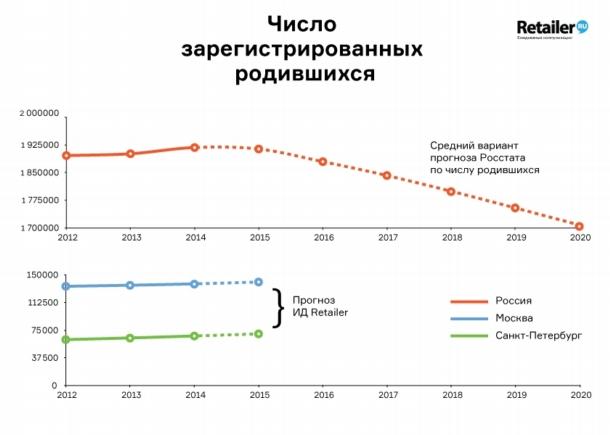 По подсчетам ведомства, к 2020 г. число рождающихся ежегодно детей снизится на 200 тыс. до 1,7 млн человек. Сказывается массовое вступление в детородный возраст малочисленного поколения 1990-х гг. Это приведет к падению рынка детских товаров примерно на 10–15%, считают в курганском магазине "Банановый слоник". В "Детском мире" комментировать прогнозы Росстата не стали.