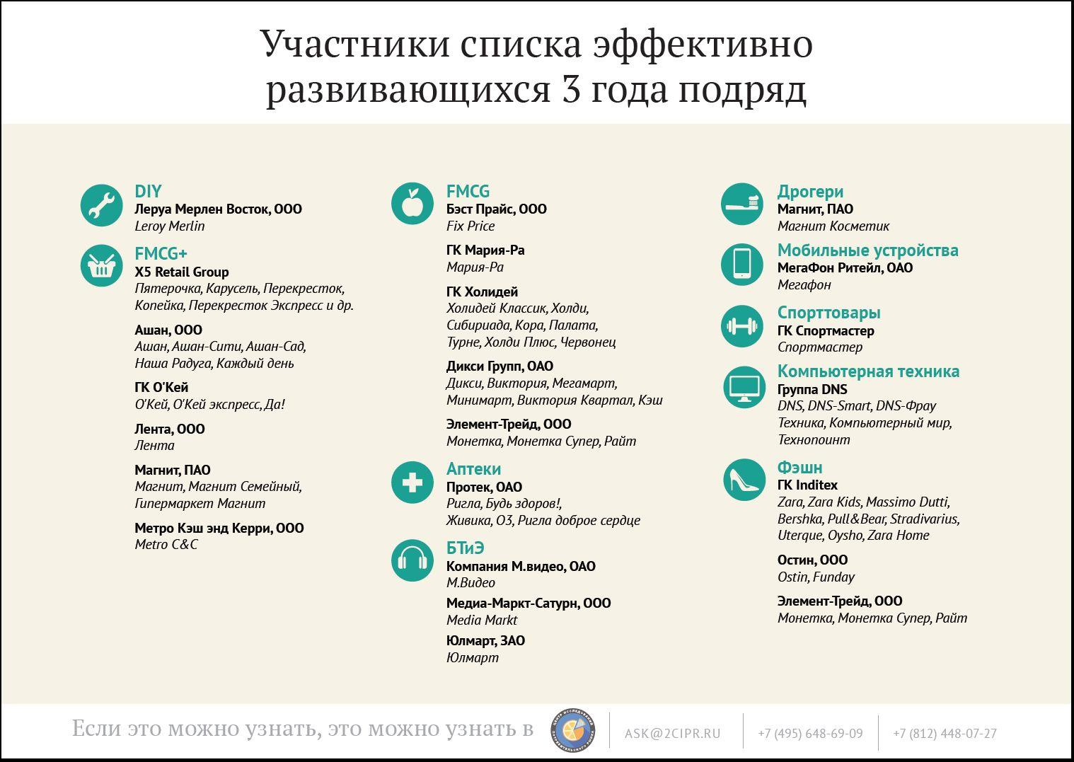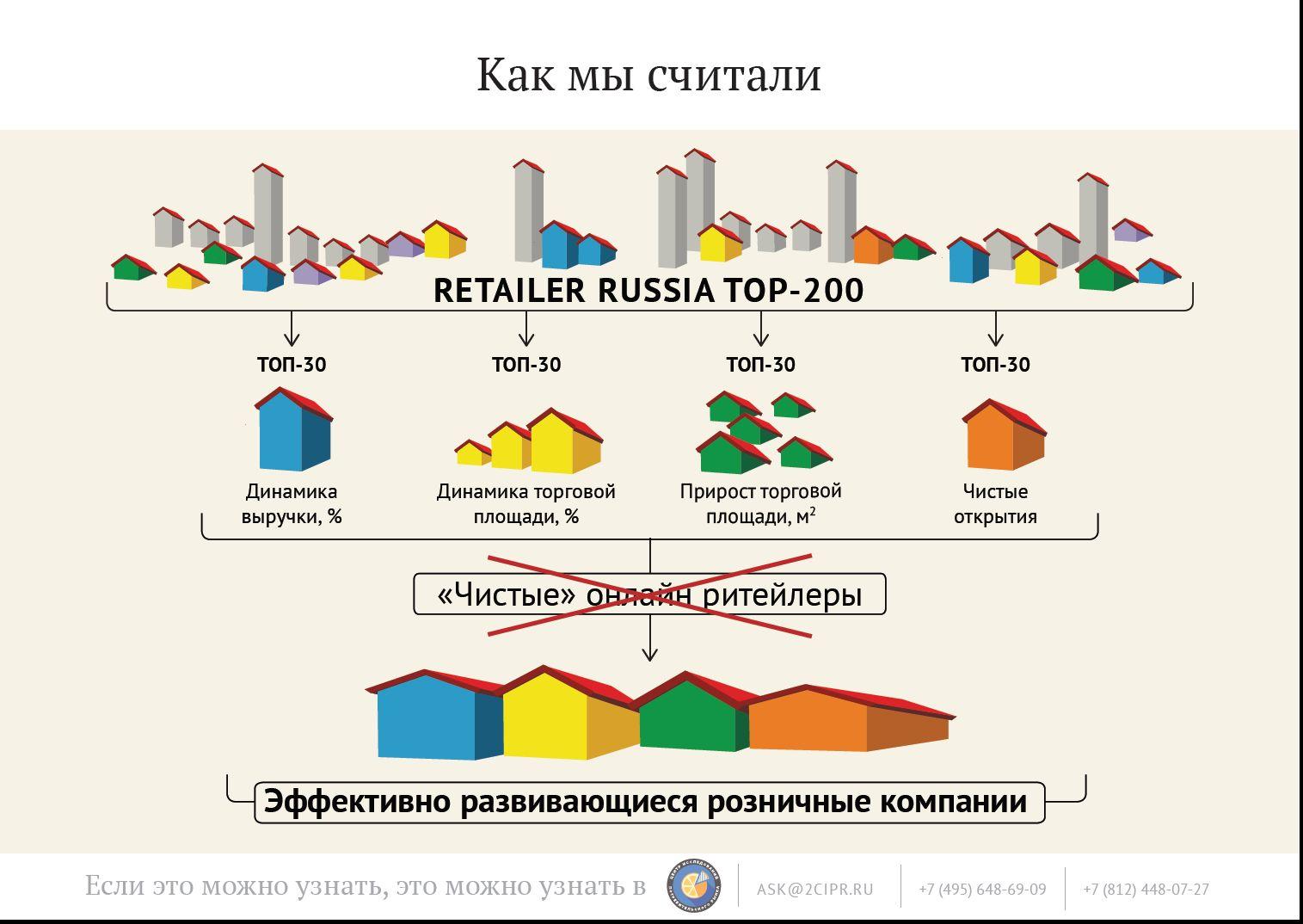 В отличии от многих других публикуемых сейчас рейтингов, данные ЦИПР собираются на основе показателей работы сетей в 2015 году. То есть, учитывают серьезные изменения рыночной конъюнктуры, которые произошли за минувший год. Таким образом, это исследование отвечает на вопрос "Что будет?", а не "Что было?".