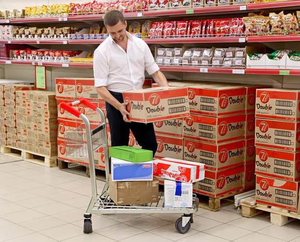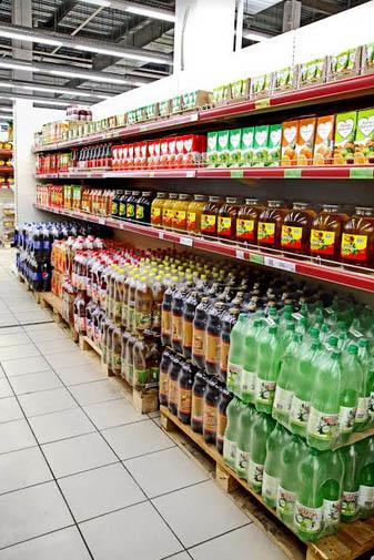 В торговом зале размещена навигация, позволяющая ориентироваться в группах товаров. Продукция хранится в больших упаковках и коробках. Для удобства посетителей предусмотрены специальные тележки.