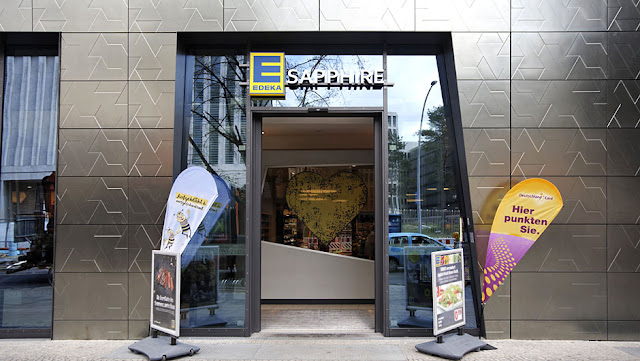 Розничная торговля, которая соответствует архитектуре — вот девиз новой Edeka, расположенной в районе Minden-Hannover, в самом центре Берлина. Приблизительно 800 кв. м торговых площадей находятся на первом этаже внушительного нового здания, построенного архитектором Даниэлем Либескиндом в январе 2017 г. Характерные углы и края здания обыгрывают технологию шлифования драгоценностей, поэтому здание и магазин в нём носят общее название Sapphire. В новый флагманский магазин Edeka инвестировала около 1 млн евро, и в него ходят около 10 000 клиентов в неделю. Фоторепортаж из магазина.