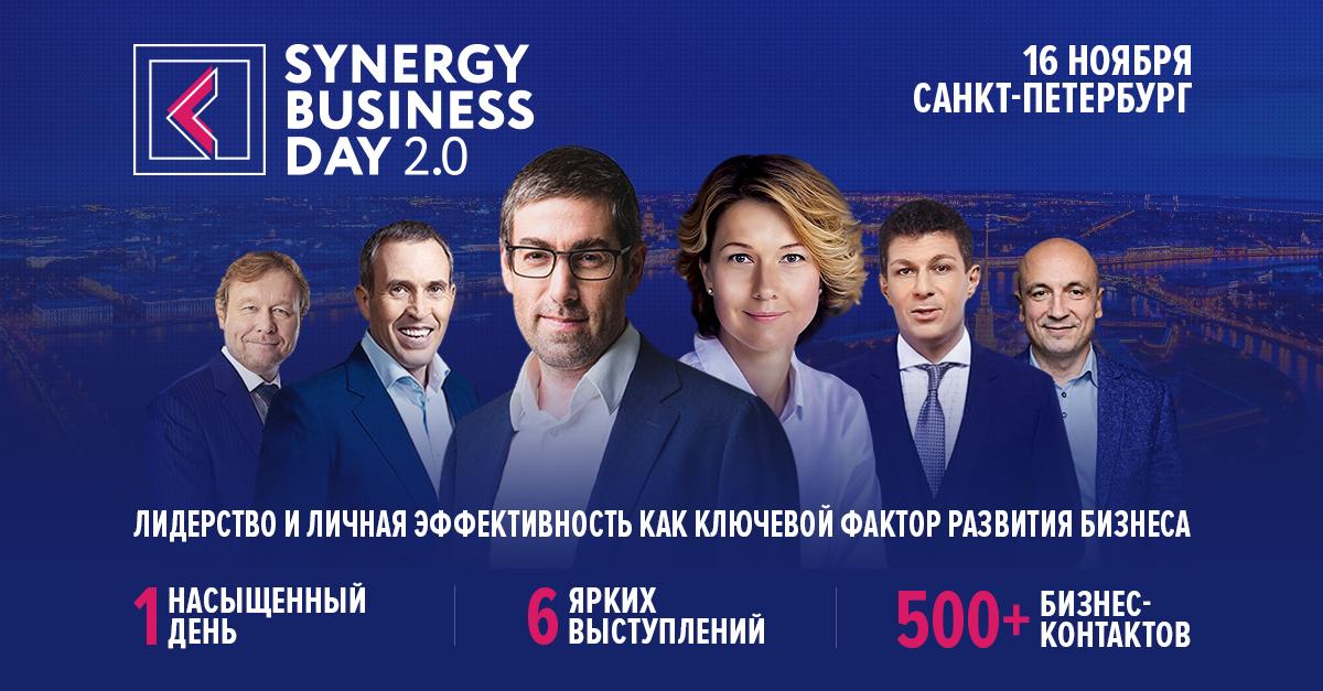 16 ноября 2017 года Школа Бизнеса "Синергия" проведёт в конгресс-центре "Петроконгресс" вторую бизнес-конференцию Synergy Business Day 2.0. Основная тема: "Лидерство и личная эффективность как ключевой фактор развития бизнеса".