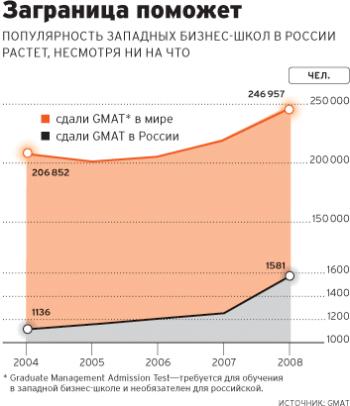 19% — рост в 2008 г. количества россиян, сдавших тест для получения бизнес-образования