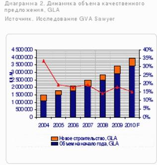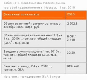 «В 2010 г. несмотря на большой объем вводимых площадей в конце 2009 г. и незначительный рост ставок в некоторых объектах, среднерыночные коммерческие условия останутся неизменными. В некачественных объектах, испытывающих проблемы с заполняемостью, ожидается послабление условий аренды», — сказано в сообщении GVA Sawer.