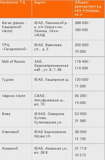 По итогам 1 кв. 2010 г. общее предложение площадей качественных торговых центров на рынке Москвы достигло 3,5 млн. кв.м (GLA). Обеспеченность жителей Москвы торговыми площадями составила 330 кв.м на 1 000 человек.