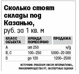 Стрюкова сообщила, что аренда за прошлый год подешевела на 22-28%, но восстановления спроса так и не произошло. По информации Praedium Oncor International, аренда неспециализированных складов обходилась в июне в 60-120 руб. за 1 кв. м в месяц. По данным Гиззатуллина, ставки на объекты классов В и С составляли 100-250 руб. за 1 кв. м, а класса А — от 250 руб. Цены продаж на производственно-складские помещения за 2009 г. снизились на 15% до 19 000 руб. за 1 кв. м, сообщает минземимущество Татарстана.