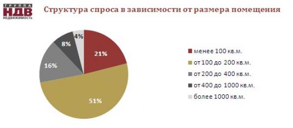 Наиболее востребованным форматом торгового помещения на сегодняшний день по-прежнему являются площади размером 100 ― 200 кв.м. в торговой галерее. До 8% увеличилась доля помещений 400 ― 1000 кв.м., более востребованными становятся крупные помещения более 1000 кв.м.