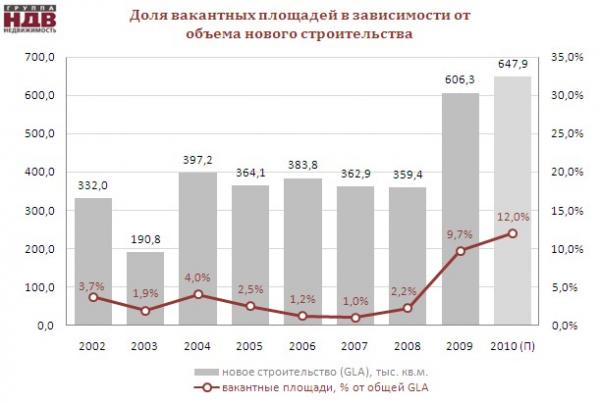 «Темпы роста спроса на торговые площади со стороны ритейлеров скованы темпами роста потребительской активности, считают аналитики «НДВ-Недвижимость». — Торговые сети отдают предпочтение успешно функционирующим торговым центрам с удачным расположением и продуманной концепцией. Новые проекты зачастую испытывают сложности с заполнением». Существующий уровень спроса не способен покрыть огромный объем предложения после выхода на рынок масштабных комплексов, запланированных на 2010 г».