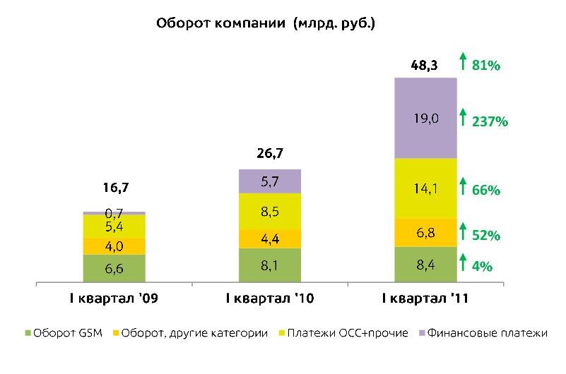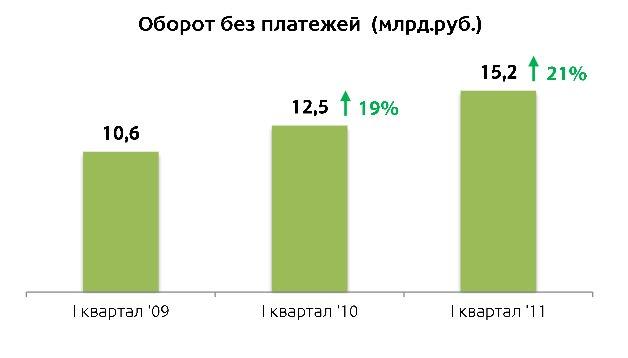 Оборот без платежей в ГК «Связной» в I квартале 2011 г. вырос на 21% к I кварталу 2010 г.