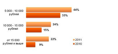 По данным опроса исследовательского холдинга «Ромир», значительно увеличилась доля родителей, потративших к 1 сентября более 5 тыс. рублей и снизилась доля тех, кому все-таки удалось уложиться в эту сумму. Большая часть родителей (44%) затратили на одежду, канцтовары и другие необходимые покупки от 5 до 10 тысяч рублей.