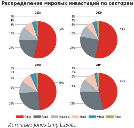 Объем прямых инвестиций в коммерческую недвижимость в мире в 2011 г. составил около $410,6 млрд. Об этом говорится в исследовании Global Capital Flows компании Jones Lang LaSalle. Рост по сравнению с 2010 г. составил 28%. Доля международных сделок выросла с 27% в 2010 г. до 31% в 2011 г.