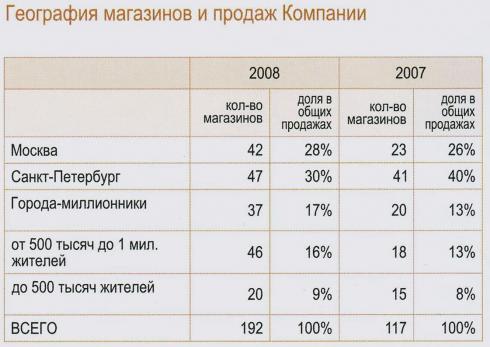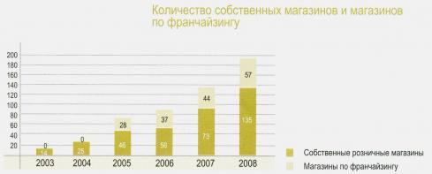 За 2008 г. количество магазинов под управлением «Мелон Фэшн Груп» возросло на 75 и составило 192 объекта.
