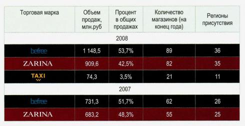 Под вывеской Zarina в 2008 г. было запущено 19 собственных и 9 франчайзинговых проектов. В этом году компания намерена увеличить число торговых точек на 15 магазинов.
