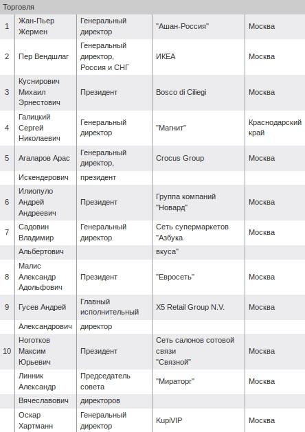 Рейтинг высших руководителей 2012: