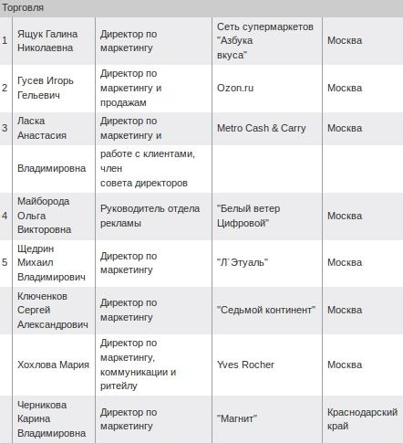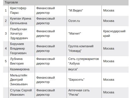 Что касается ритейла, то в Топ-1000 вошли 64 руководителя от розничных сетей. Особо отличились топ-менеджеры "Азбуки Вкуса", "Евросети", Ozon.ru и ГК "Новард" — их больше всего в рейтинге.