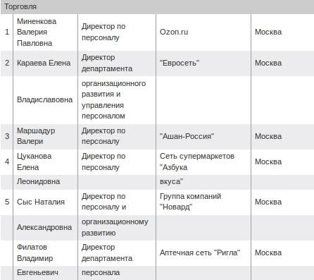 Рейтинг директоров по управлению персоналом 2012: