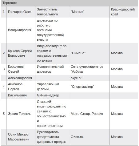 Рейтинг коммерческих директоров 2012: