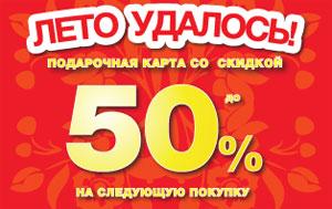 9. Акция «Лето удалось!» стартовала 14 июля в сети магазинов «М.видео». До 10 августа при покупке товаров, участвующих в акции, покупатель получает подарочные карты со скидкой до 50% на следующую покупку.