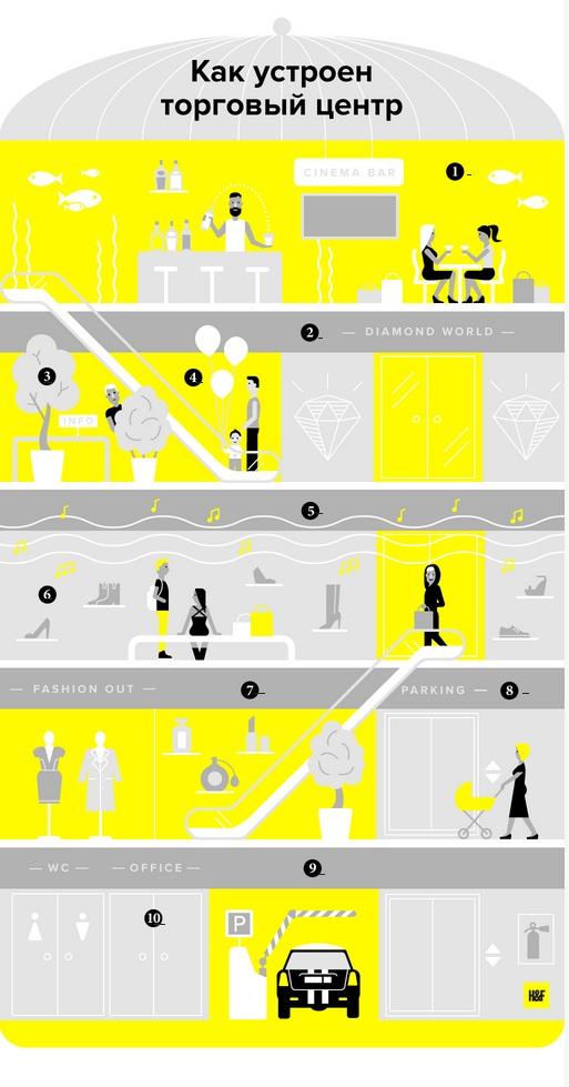 Обычный с виду торговый центр на самом деле продуман до мелочей с точки зрения воздействия на покупателя. H&F разобрался, по каким принципам работают эффективные торговые площади.