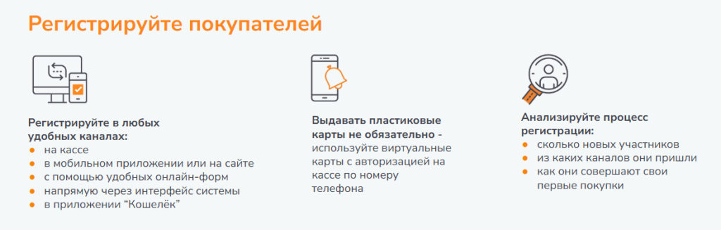 Set Loyalty позволяет регистрировать покупателей прямо на кассе, через сайт, мобильное приложение или QR-анкеты, код которых можно разместить на любом носителе.