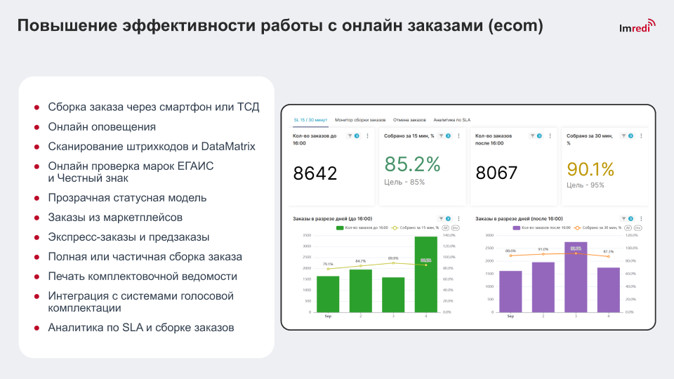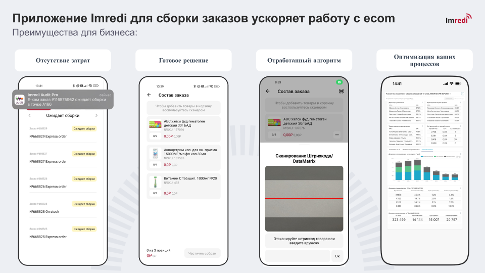 Цены на большинство одинаковых товаров в интернет-аптеках не отличаются, поэтому главными критериями выбора для покупателей становятся уровень сервиса, скорость сборки заказа и гарантия его выполнения. Более 40% российских покупателей интернет-магазинов готовы отказаться от покупки из-за неопределенного срока сборки/доставки заказа. «Последняя миля» становится определяющей для формирования репутации аптечной сети. Ошибки при сборке, несвоевременная доставка = расстроенный покупатель, негативные отзывы и отказ от услуг в перспективе. Выстроить эффективную систему работы с заказами позволяет коллаборация готовых и отработанных решений с текущими бизнес-процессами сети. Коробочные решения — идеальный вариант, в которых есть гибкость конструктора, позволяющая оцифровать текущие процессы, и отработанные технологии, которые уже доказали свою эффективность на десятках тысяч пользователей.