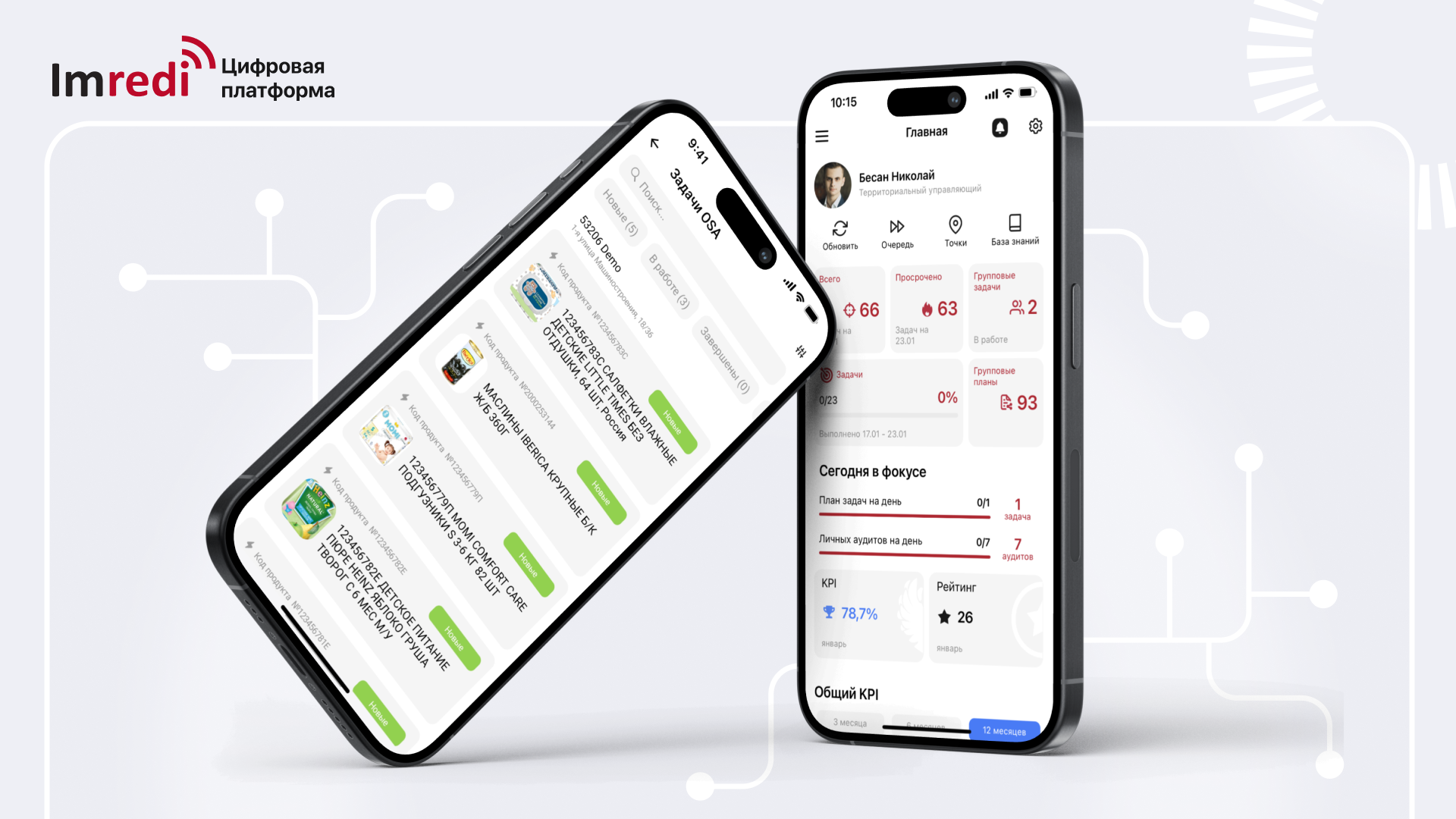 Среди них цифровая платформа Imredi, входящая в цифровой кластер Х.Технологии «Ростелекома». Она позволяет оцифровать все задачи и коммуникации с магазинами, организовать их проверки и фотоконтроль, работать с товарами, собирать и анализировать данные из точек продаж, предоставляя единое рабочее место в мобильном приложении. Каждый день на платформе Imredi работают более 70 000 пользователей из таких сетей как Бристоль, Ригла, Винлаб, Мария Ра, Пивко и других.