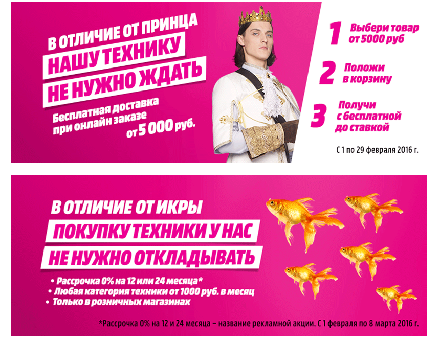 Александр Федосов, вице-президент по маркетингу Media Markt: "Media Markt в этом отношении нацелен на предоставление потребителю открытой и прозрачной выгоды. Например, акция "Без НДС" проводится на весь ассортимент и широко анонсируется потребителям. А наша новая рекламная кампания, которую мы запустили прошлой осенью, нацелена на то, чтобы путем простых сравнений Media Markt со сказочными и мифическими персонажами или неожиданными ситуациями показать потребителю выгоду покупки у нас. Кризис — это то самое время, когда нужно думать о том, как подарить больше позитивных эмоций. При этом никто не отменяет каждодневной работы над ассортиментом и ценами, но это фундамент, а "надстройка" должна приносить эмоции и удовольствие".