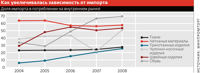 "Мы морская держава, авиационная держава, но мы не держава махровых полотенец", — сказал недавно корреспонденту "РР" заместитель министра промышленности и торговли Станислав Наумов. Мы говорили о кризисе и импортозамещении. Это слово чиновники с особым усердием твердят последние два года. Видя тотальный обвал — экономики, рубля, кредитования, — они надеялись, что кризис принесет хоть что-то хорошее. Как в 1998 году, когда дефолт вдруг дал толчок развитию отечественного производителя. В 2009 году импорт рухнул на треть. Но сопоставимого роста собственного производства не произошло. И импорт стал быстро возвращаться. Почему нам не удалось воспользоваться шансом слезть с импортной иглы, "РР" разбирался на примере легкой промышленности