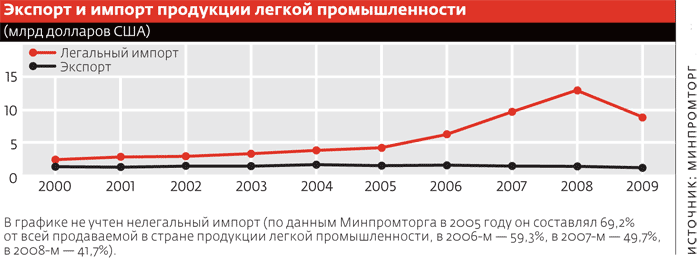 — …Так вот, это суровье очень часто поступает или вчерную, или с занижением таможенных платежей. Вообще большая часть импорта продукции легпрома в Россию — это контрабанда.