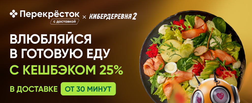 Торговая сеть совместно с «Кинопоиском» запустила лимитированную линейку готовой еды, приуроченную к новому сезону сериала «Кибердеревня». В сервисе доставки «Перекрёстка», а также на полках супермаркета появилось 16 эксклюзивных блюд, каждое из которых олицетворяет собой одну из 5 эмоций, которые потребитель ищет каждый день.