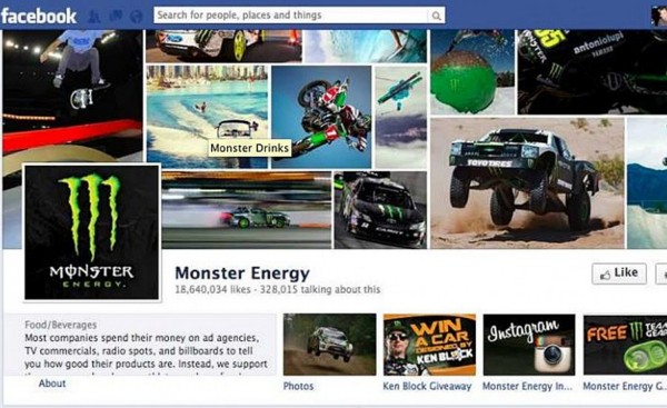 Согласно своему спортивному имиджу, бренд Monster (производитель энергетических напитков) публикует посты и фотографии, связанные с экстремальным автоспортом, чествуя спортсменов и их достижения.