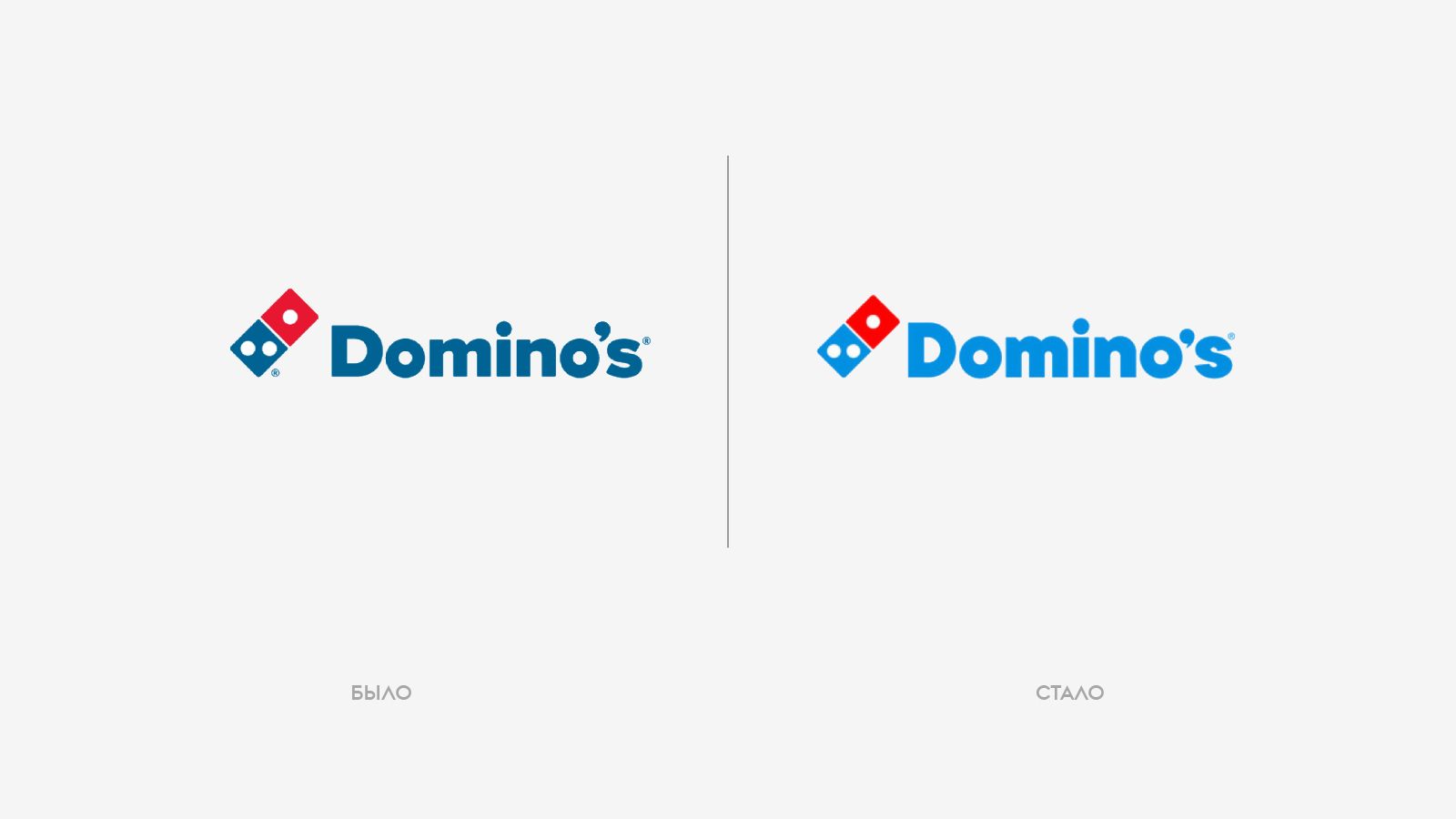 Ребрендинг разработан совместно с агентством WorkInProgress. Визуальная часть обновления включает яркие оттенки красного и синего, новый шрифт Domino’s Sans и переработанную упаковку, отражающую «пиццу, только что вынутую из печи».